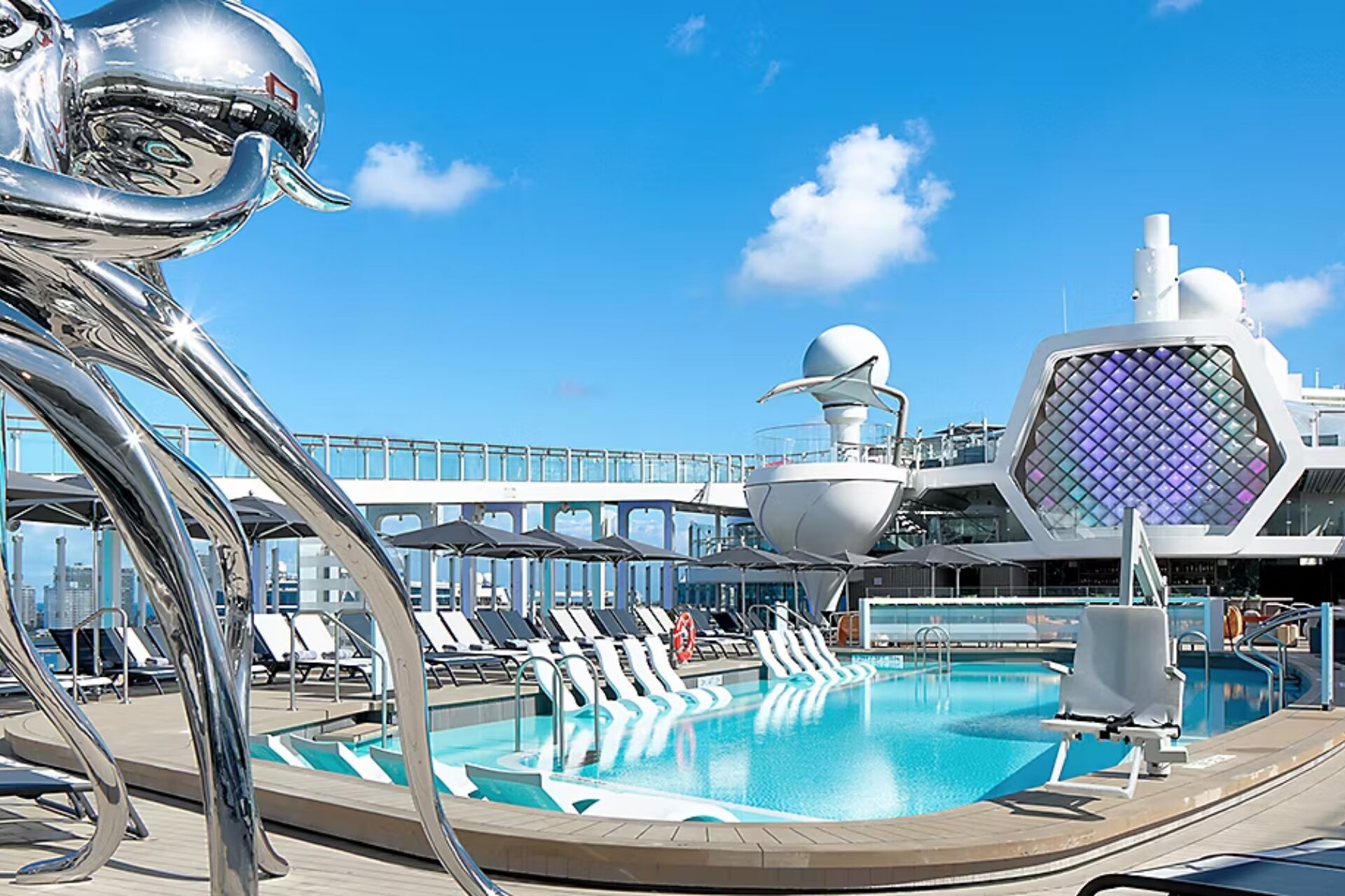 Access to onboard facilities including pools, fitness centre and entertainment