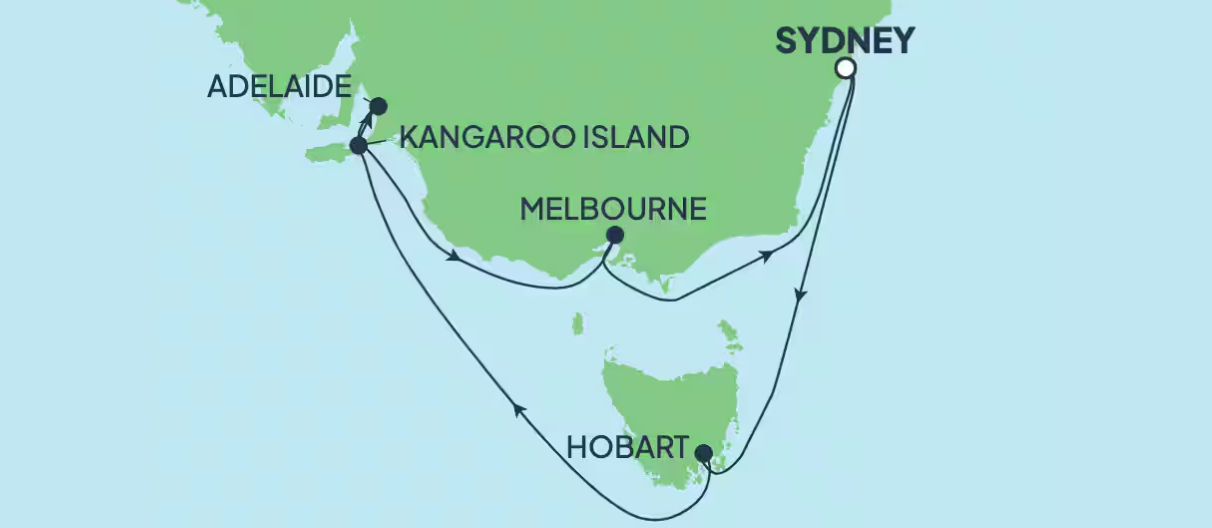 Sail Australia’s southern coastline on a refined journey that brings together celebrated wine regions, cultural cities and striking coastal landscapes. Departing and returning to Sydney, this curated voyage explores Tasmania, Kangaroo Island, Adelaide and Melbourne, balanced with relaxed days at sea. Designed for travellers who appreciate comfort, cuisine and immersive experiences, this journey offers a seamless and elegant way to discover Australia from a new perspective.